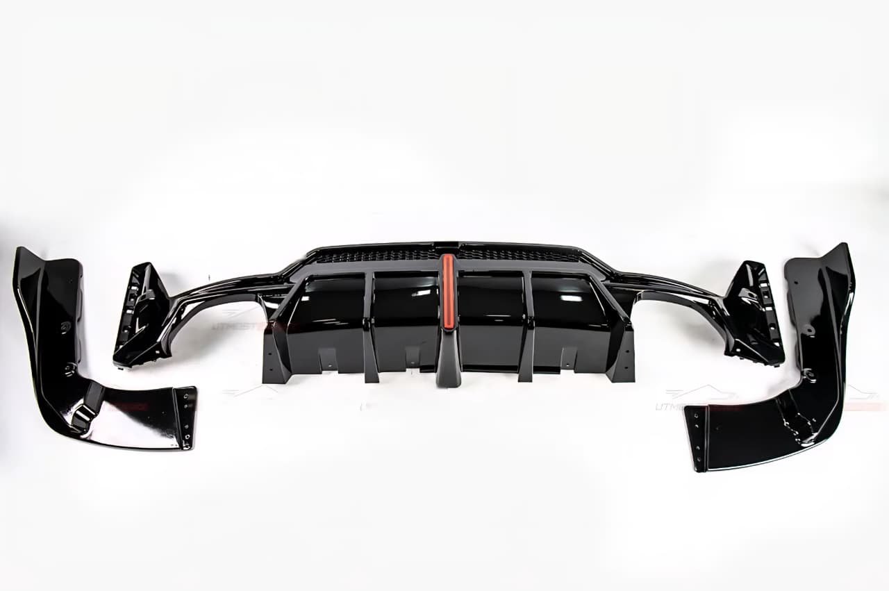 Upgrade your BMW’s rear look with a gloss black sport diffuser featuring red LED lighting. This 3-piece rear bumper diffuser delivers an aggressive sporty finish, premium shine, and perfect fitment. Now back in stock at the best price!